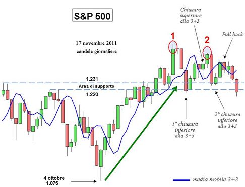 La distanza con la quale lo S&P; ha perforato l’area 1.220-1.231 è comunque troppo esigua per escludere l’ipotesi di falsa rottura.