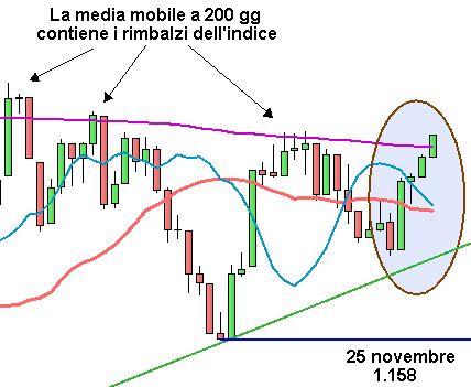 Come si può notare dal grafico l’indice americano ha superato la media mobile a 200 giorni.